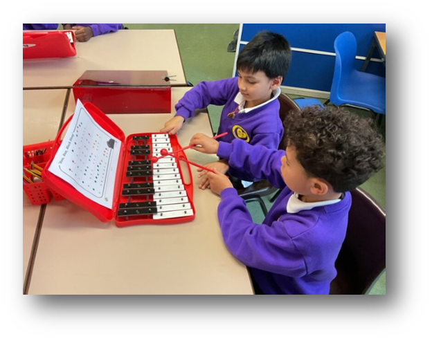 Music is taught as a discrete subject. It covers different topic-based themes and includes all pupils and provide them with the opportunity to be challenged.